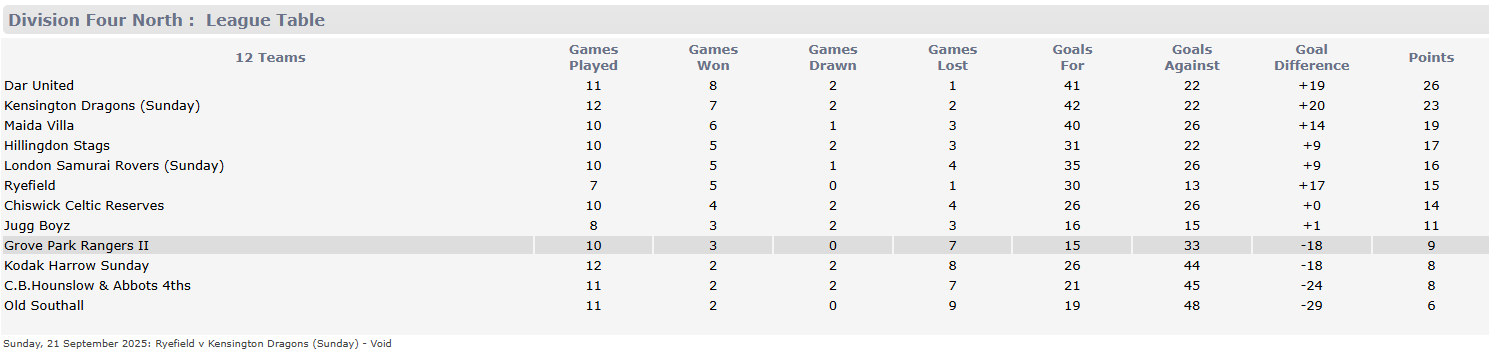 MCFL DIVISION 4 NORTH LEAGUE TABLE